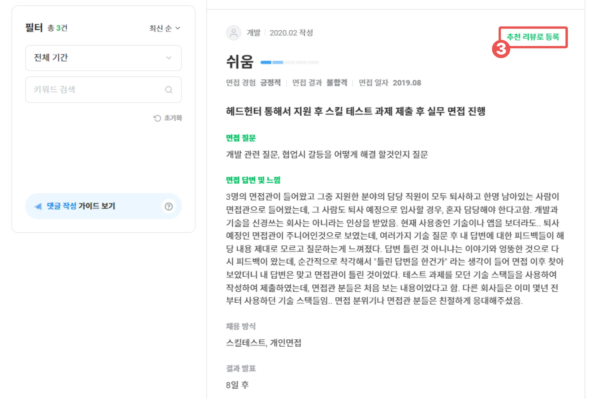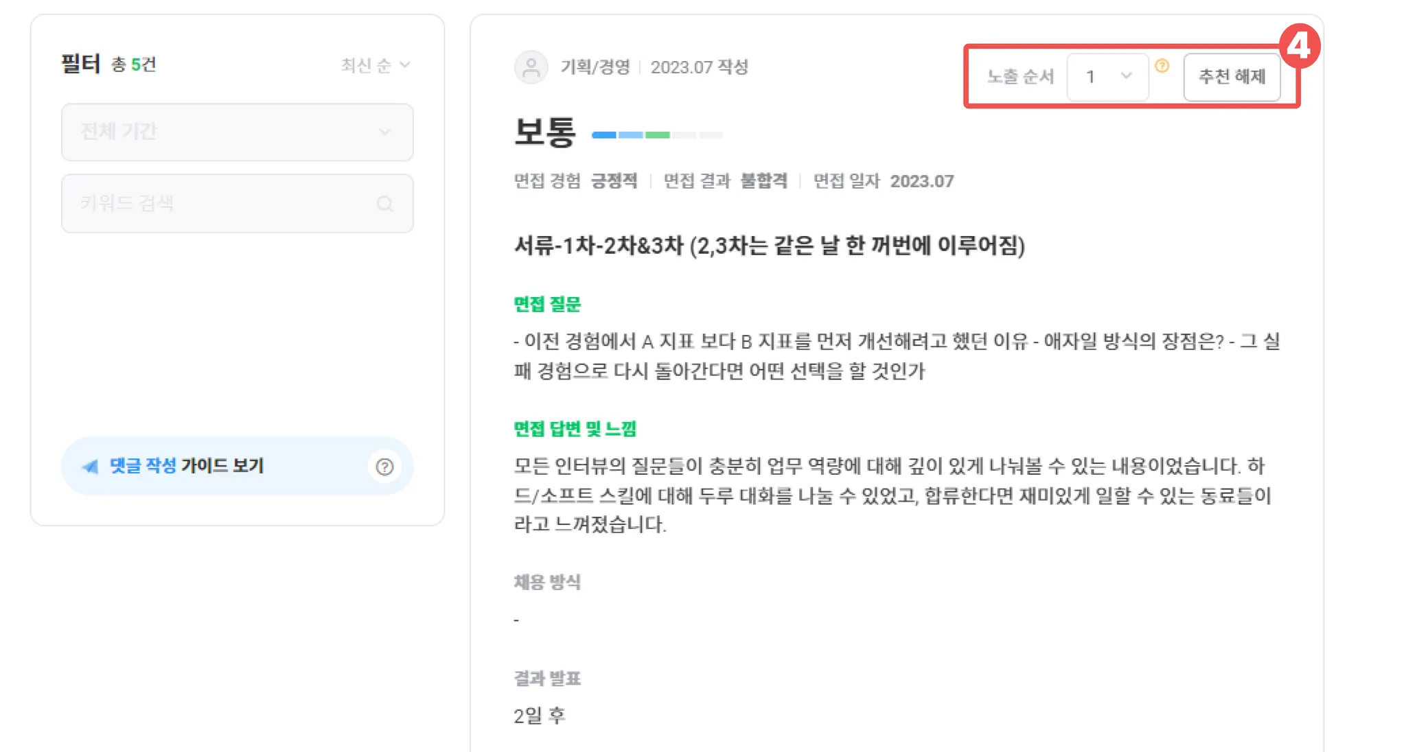 - 우리 회사를 객관적으로 표현하고 있는 면접 후기를 선택해서 상단에 노출해 보세요.