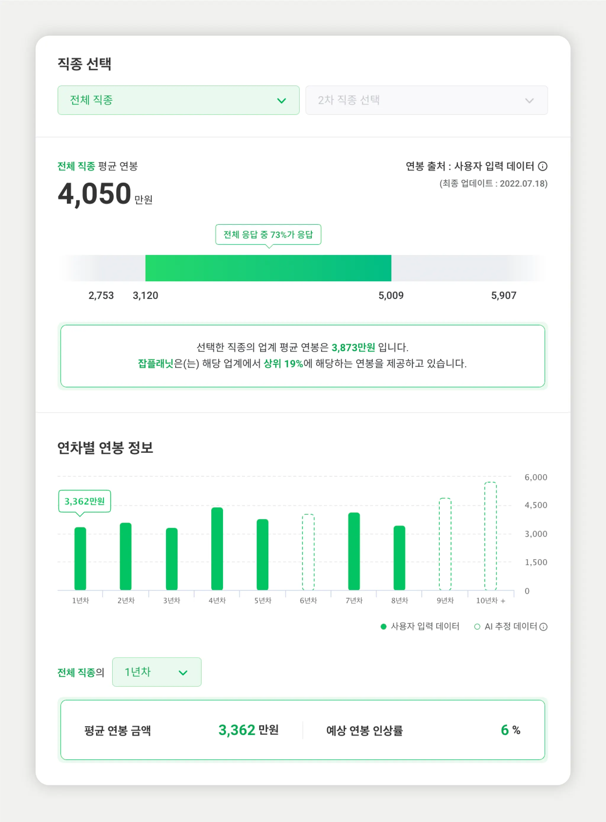 잡플래닛에 제출된 연봉정보를 기반으로 유저 직군에 따라