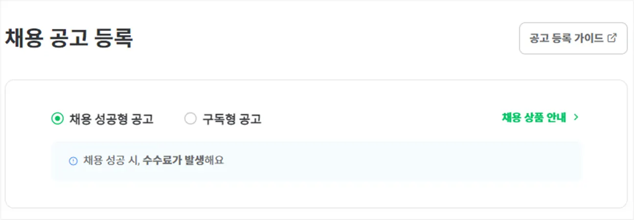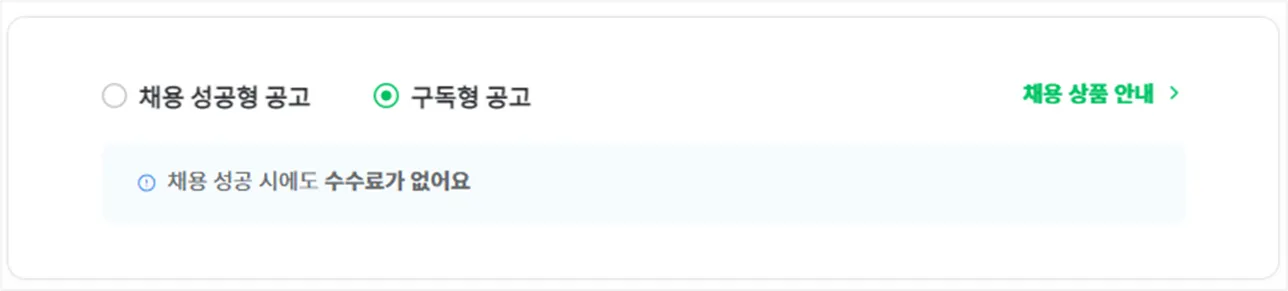 구독형 공고 : 채용 성공 시에도 수수료가 없는 공고 (취업축하금 없이 기업에서 사이닝 보너스 설정 가능)