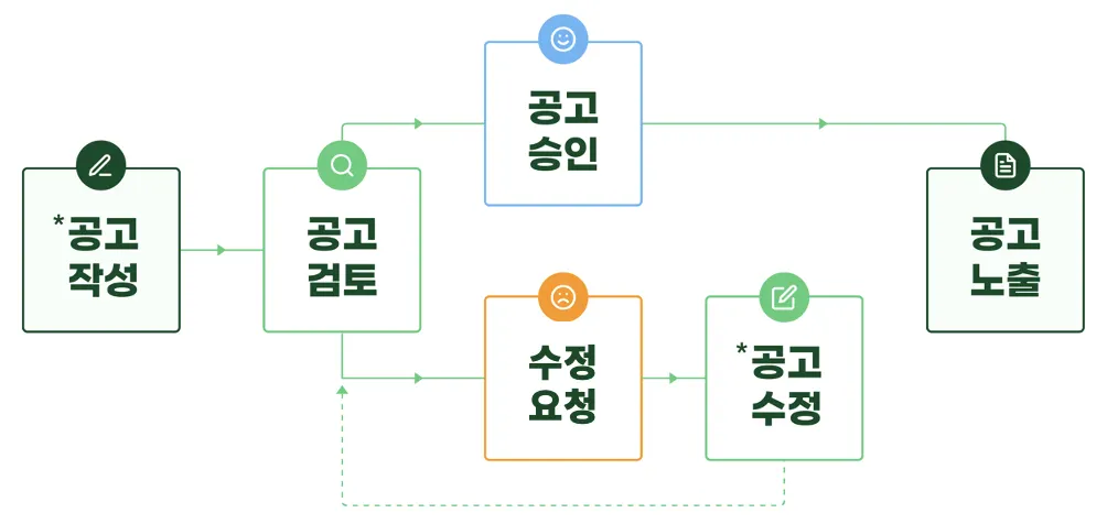 작성 완료 이후 공고 검토가 진행되며 승인 후 공고가 노출됩니다.